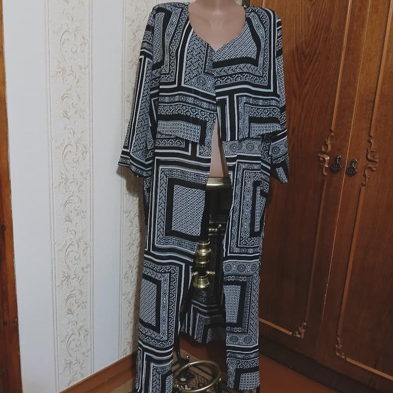 Шикарный кордиган пойдёт как база дополнение к вашим нарядам,платья,майки,топы по составу шелк с полиэстром средней плотности в разноцветном геометричном принте. Дл.122 Пл.40 Р3/4-48 Ог-Об 120-125+ Б по 19