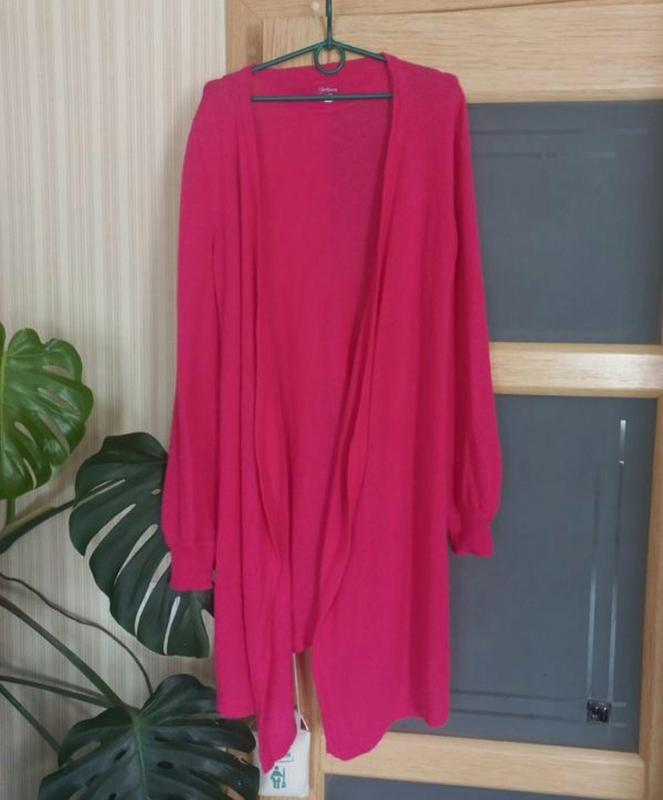 Фото чуточку не передает цвет Мягкая вязка, красивая и удобная модель. Перед идет чуточку клиньями, спинка короче. Пишет размер ХЛ. Но оринтуйтесь по замерам. Лучше будет на М -Л Плечи 49 По грудях 57 Бедра 60 Рукав 76 (там манжет и напуск/ Длина 94 Спереди идут как бы клинке Они имеют 104 см Вязкая мягкая. Красиво тянется. Пыталась все верно измерить, трудно потому что ткань такая тянется