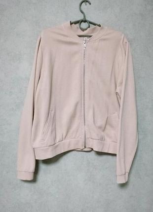 Женский бомбер, пудрового цвета, отличное качество. Длина изделия - 60 см, плечи - 43 см, рукав - 67 см, ПОБ груди - 58 см, ПОБ низ - 53 см резинка тянется.