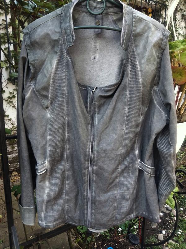 Плотный хлопок с эффектом потертости, комбинированная с кожзам, спинка по низу присборенная вставка тоненье хлопок, доставит интересную и универсальную вещь в цвете граффити. ПОГ 55 Д 60