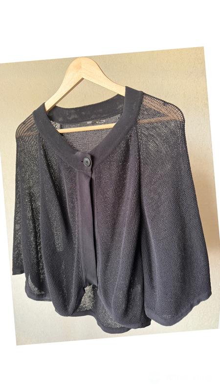 Кардиган накидка топ Кольчужне плетіння 65/35 бавовна поліамід Свобідний крій Широкий рукав Ідеально підійде для стильного нашарування в теплий сезон Розмір мл Колір темно синій Заміри Ширина Ширина в під рукавами 57 довжина 60 рукав від коміра 49