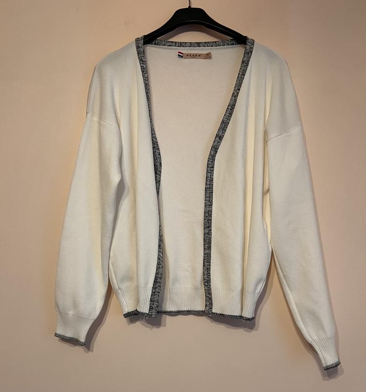 кардиган AZARA PARIS білого кольору, без застібки Зручно носити, підходить для щоденного використання, роботи, офісу, бізнесу, дня народження, пікніка, виходу на вулицю та інших подій. Розмір універсальний Заміри: Плечі 54 ПОГ 48 Рукав 47 Низ 42 Довжина 56 см Відмінний стан