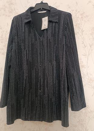 Оригинальный бренд, стиль, стиль, полуобхват по линии груди 65см., длина изделия 75 см., длина рукава 60 см. Очень мягкий и эластичный материал. --- 🖤 Стильный кардиган Tu WOMAN, размер 18 Бренд: Tu WOMAN (Sainsbury’s) Размер: UK 18 (европейский 46) Цвет: Черный с графитовыми вертикальными полосами Материал: ▪ 71% полиамид ▪ 23% металлизированные волокна ▪ 6% еластан ▪ Эластичный, мягкий, с легким блеском Состояние: Новый, с биркой Ціна на бірці: £20 Страна производства: Бангладеш Описание: Элегантный кардиган с легким shimmer-эффектом, красиво переливающимся при свете. Имеет классический воротник, застегивается на пуговицы, длинный рукав. Вертикальные полосы визуально вытягивают силуэт. Идеален для офиса, вечерних выходов или стильного повседневного образа. Легко комбинируется с джинсами, брюками или платьем.