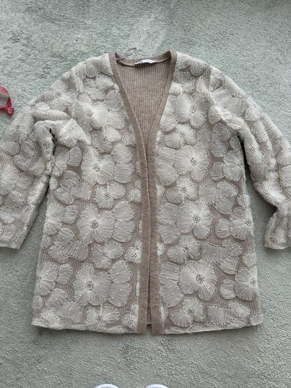 Довжина 80,рукав 60, без ґудзиків , виглядає дуже ефектно .