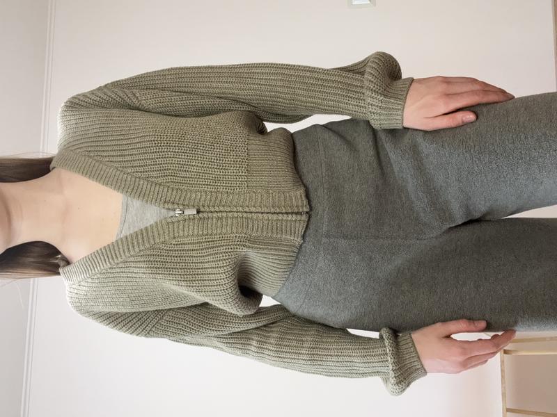 Вʼязаний кардиган хакі кольору, новий, не ношений. Оверсайз крій, розмір S. Купляли в SINSAY. Стильний, гарного фасону.