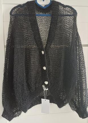 Трендовый кардиган паутина ручной работы по мохеру премиум класса. Цвет черный Длина изделия 50см ширина 52см