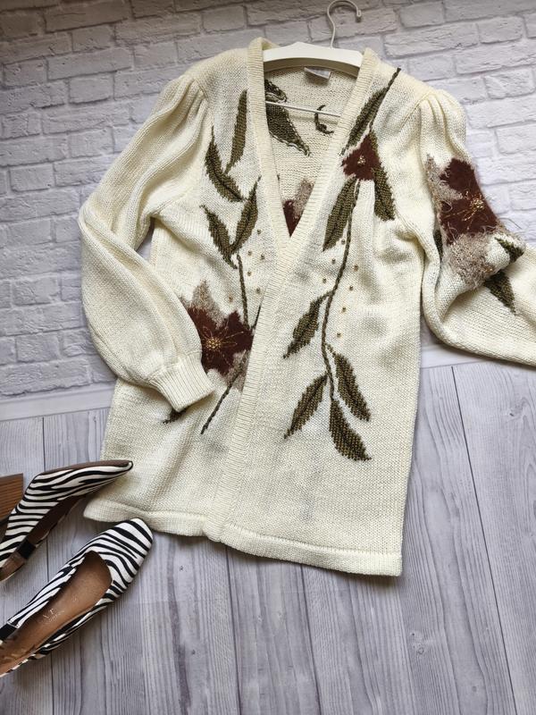 В идеальном состоянии! Очень красивый кардиган! Качество отличное! Плечи 41, пог58, длина 80, сзади 77, рукав 63.