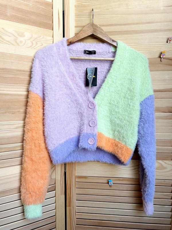 👍Дуже м'якенький светрик De Facto. З бірками, абсолютно новий. 🌿Розмір S-М. Яскравий, супер м'який плюшевий, вкорочений кардиган, широкий крій. 💐Заміри: підмишками 50 см, ширина по нижньому краю 42 см, висота по спинці по центру 47 см (з коміром), рукав від підмишки 44 см. Гарно тягнеться. ❤️Все дешево і без повернень.