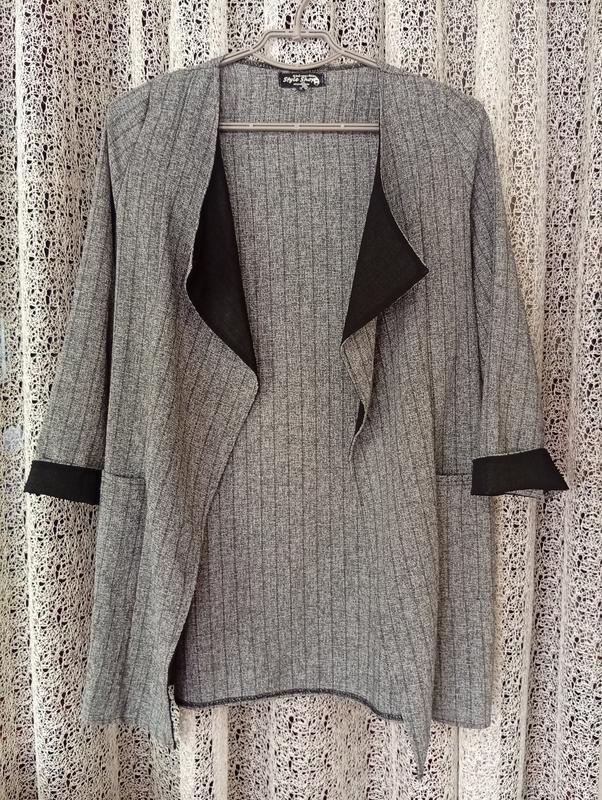 Стильный кардиган/ пиджак. Красиво садится по фигуре,есть 2 кармана спереди. Удлиненный. плечи - 36см рукав - 51 см длина - 78 см