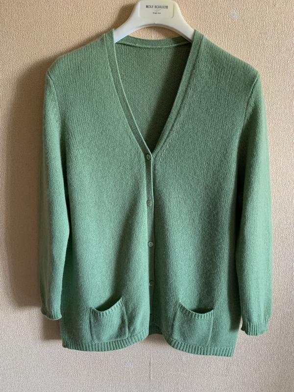 Элегантный базовый кардиган из 100% кашемира от немецкого бренда Peter Hahn. Мягкий, тёплый и невесомый — идеален для прохладных дней. Классический крой с V-образным вырезом, застёжкой на пуговицы и удобными накладными карманами. Цвет — нежный зелёный (mint green) фото 8. Размер указан D 46- M, но подойдёт и на S-M (уточняйте замеры). Замеры: длина 69, ПОГ 55, низ 52, плечи 39, плечо 13, рукав 61 см. Два кармашка - 10/9 см. 👍 Состояние отличное. 💯 Состав: 100% кашемир 📍 Производство: Германия 💚 Идеален для капсульного гардероба