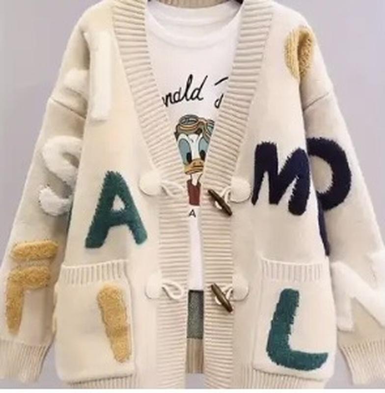 Модний у букви теплий Кардиган на петельках з деревʼяними ґудзиками,л хл. Плечі приспущені 59,груди 56,рукав 47,довжина 67.