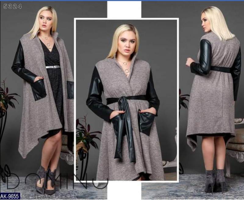 кардиган с кожаными вставками есть карманы и пояс размер универсальный 48-52 на ог 98-110