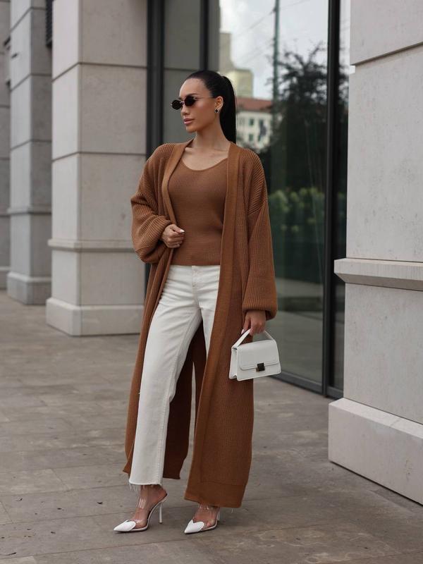 NEW осінь/весна🌿 Кардиган 🌿 ▫️ціна 3799 грн ▫️Розмір OneSize ▫️Склад: віскоза 40%, бавовна 50%, поліестер 10% ▫️Довжина по спинці 134 см. ▫️Спущений рукав 57 см. Топ на брителях🌿 ▫️Довжина з брителю 51 см ▫️Розмір: XS-S , M-L , XL ▫️Склад: віскоза 40%, бавовна 50%, поліестер 10% ▫️Колір: рожевий , молоко, графіт, шоколад, сірий, чорний, сапфір, каштан Арт.sol
