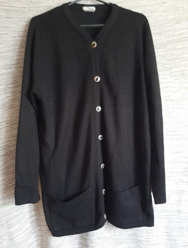 стильная кофта на пуговицах -кардиган цвет черный акрил замеры длина 80 полхват груди 60 (тянется ) низ 64 рукав 62 см
