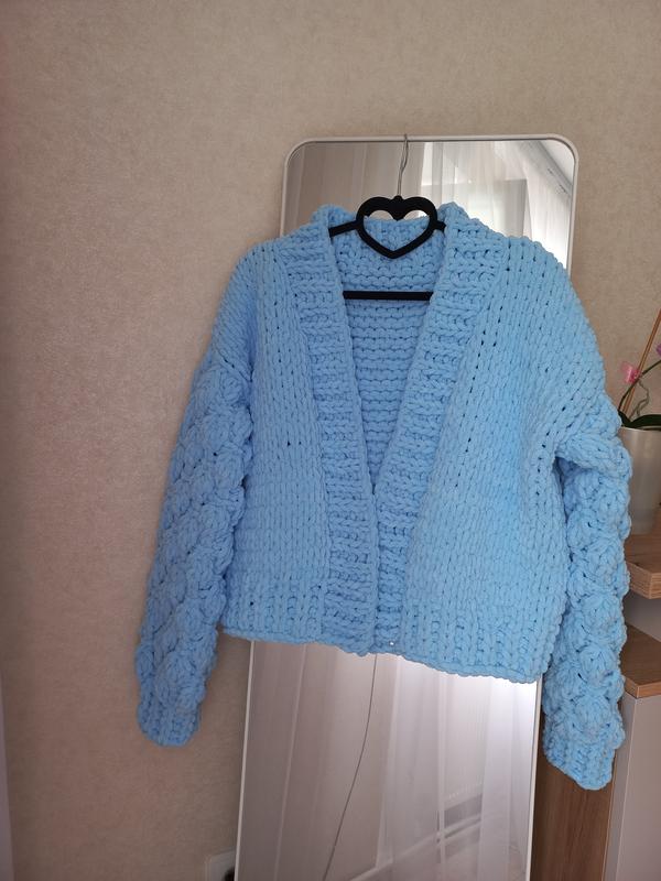 Вязаный плюшей кардиган❤️ Очень мягкий, теплый и приятный на ощупь Ручная работа ✅В наличии размер М ✅Замеры: длина 49 см, ширина 56 см, рукав от горловины 69 см ! Более широкие размеры и цвета возможны под заказ