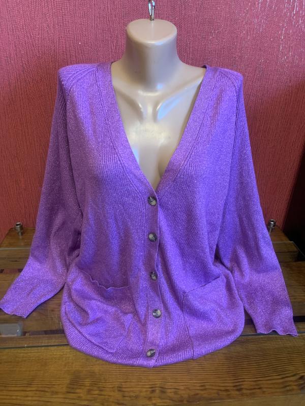 Новий кардиган з люрексовою ниткою бузкового кольору. Заміри надам при потребі. Дивіться інші мої оголошення, є багато різних речей та взуття. Діють постійно знижки та акції.