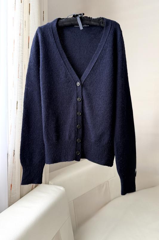 Красивый темно-синий кардиган от Marc Cain. 🌷Абсолютно новый, только без ценника и бирки с составом. 🌷Укороченный крой, 🌷V-образный вырез горловины с застежкой на пуговицы, 🌷Длинный рукав с налокотниками, 🌷Небольшие боковые разрезы. Подойдет на XS-S размеры. По моему мнению шерсть и шерсть альпака. Поб плечи-36см., Поб грудь-43см., Поб талии-43см., Поб по нижнему краю-33см., Длина по спине от ворота-52см., от плеча-52см., Длина рукава-61см.