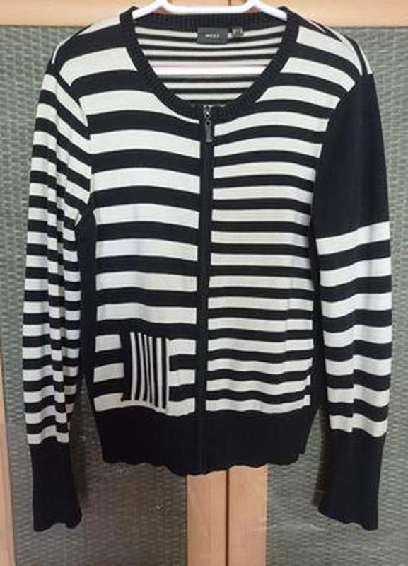 Кардиган в полоску Замеры по груди 48 см тянптся до 52 см, длина 61 см.