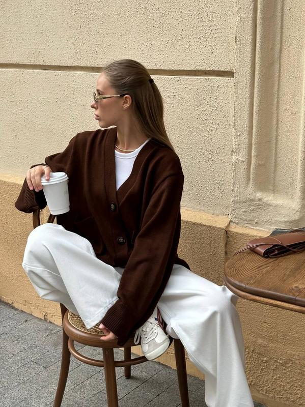 Кардиган Амели Размер: one size Состав: 30% шерсть, 70% акрил Цвета: молоко, шоколад, серый, бордо Уход: ручная стирка до 30° Производство: Украина ____________________________ Длина 55-56 Ширина 65 см