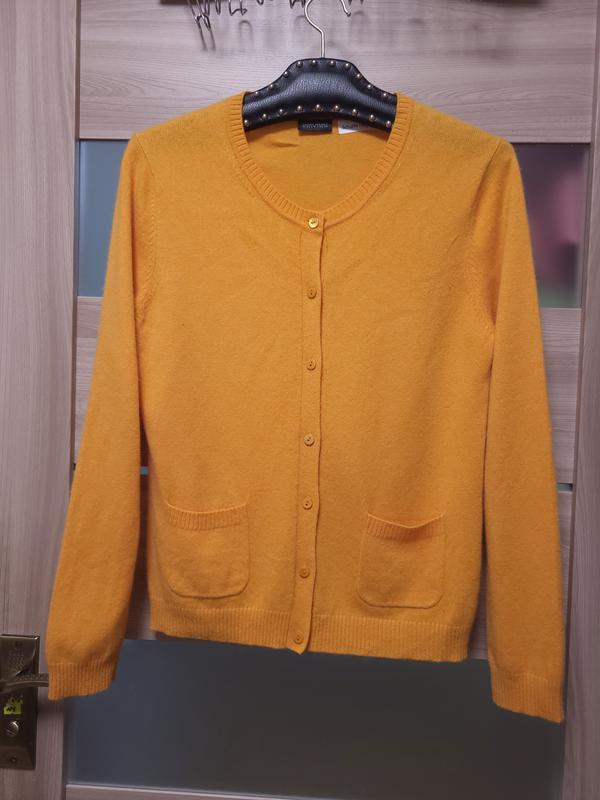 Кардиган на пуговицах от бренда Gerry Weber. Состояние нового, нюансов нет. Цвет апельсинки. 100% кашемир. Бирка срезана. Длина 60,грудь 51,рукав 64,плечи 42