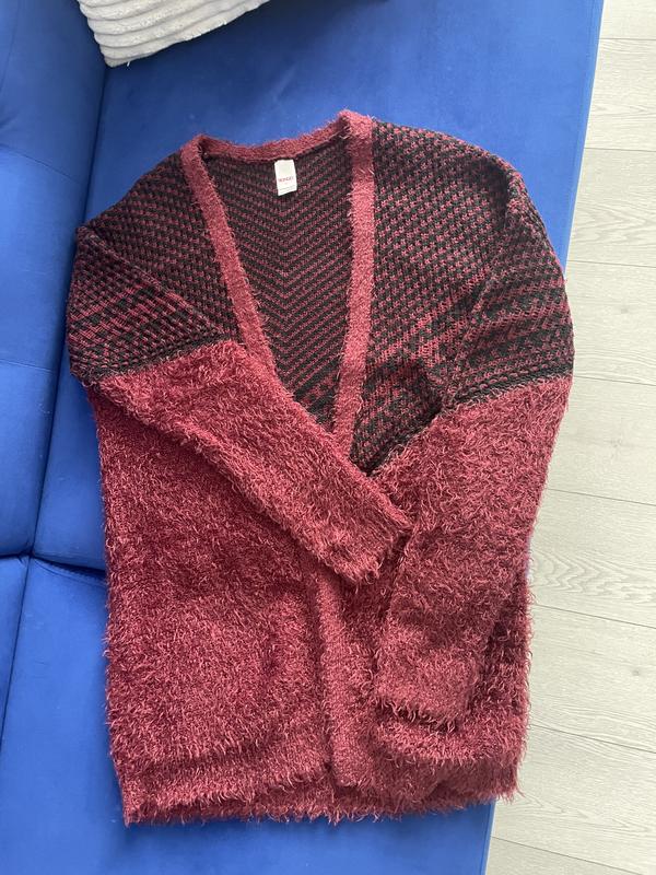 Теплий та комфортний кардиган. Без застібки, зручно накидати в теплу осінь. Зверху орнамент чорного кольору