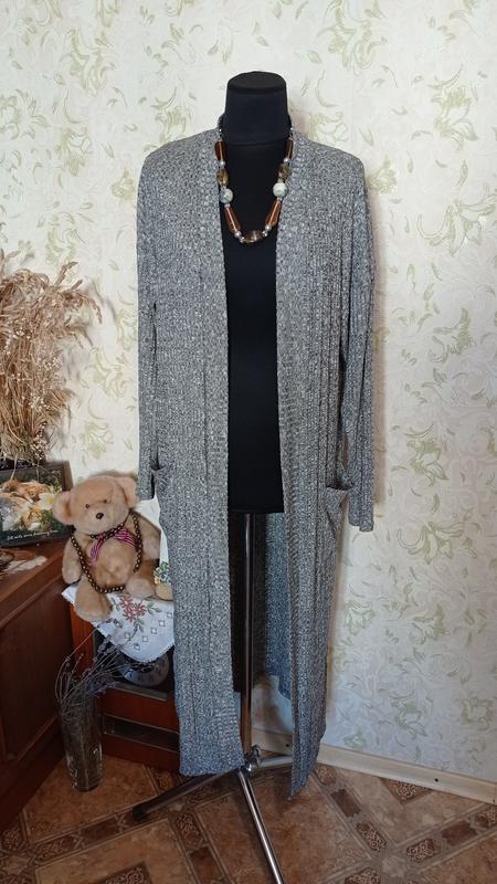 Ширина под мышками 55 см, полу ОБ 54 см, длина по спине без ворота 117 см, плечи приспущенные 60 см, рукав 49 см, ткань тянется