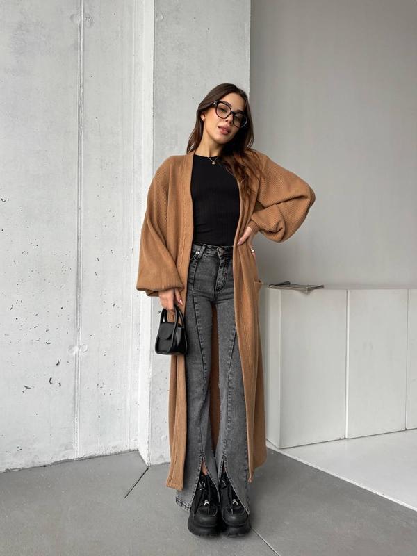 Вʼязаний кардиган міді бежевий кардиган карамель довгий кардиган