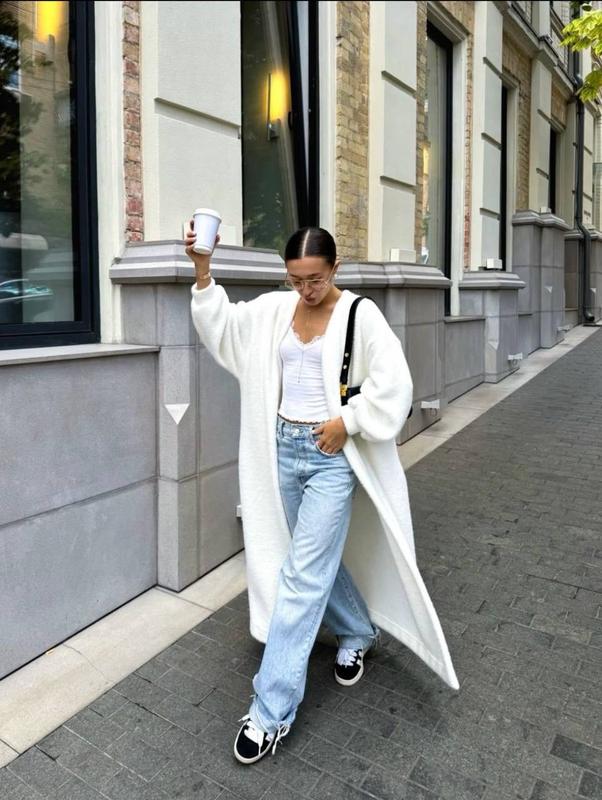 №2518 Кардиган с поясом Размеры: 🔖1(42-48) длина 120 см 🔖2(42-48) длина 130 см Цвет: Молоко Ткань-ангора пушистая альпака