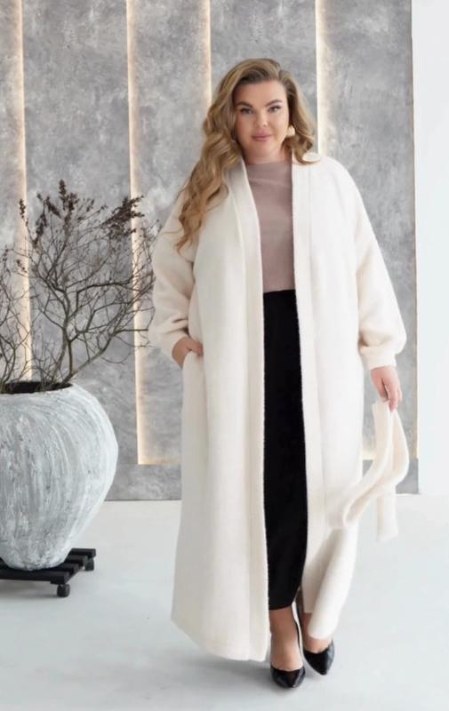 Кардиган женский длинный с поясом, большого размера, плюс сайз батал, молочный