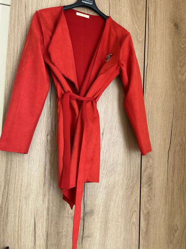 Кардиган на запах під пояс Тканина - мʼяка по типу велюра Колір - яскраво червоний