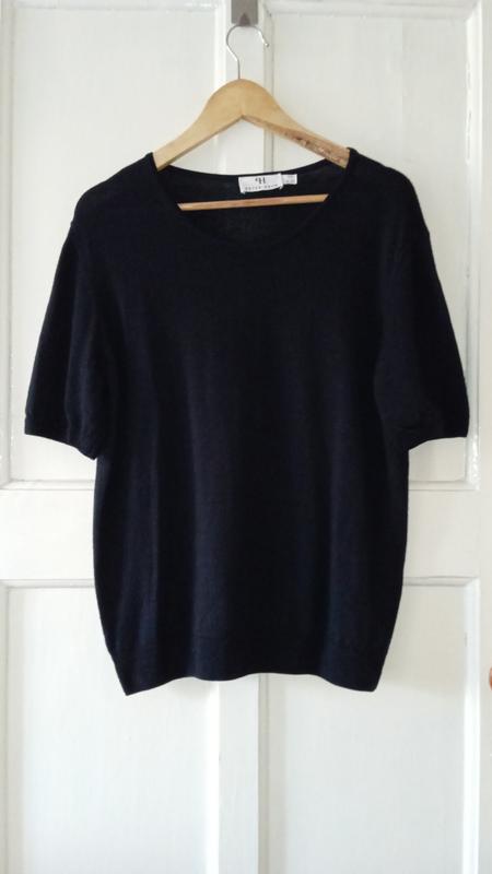 Кофта с коротким рукавом, из высококачественной шерсти от известного бренда, цвет темно-синий
