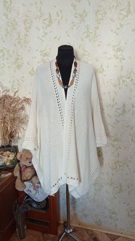 Ширина под мышками 118 см, ширина низ 101 см, длина по спине 75,5 см, длина по плечу 70 см, цвет молочный