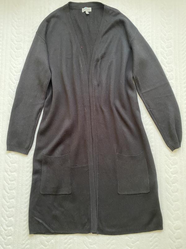 Продам дуже гарний жіночий кардиган розмір S-M. В ідеальному стані. На фото засвідчується. В живу колір чорний. Довжина - 89 см. Ширина під пахвами - 50 см. Довжина рукава від шиї - 68 см. Довжина рукава по внутрішньому шву - 45 см.
