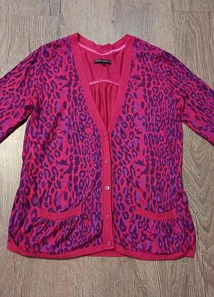 кардиган в яркий леопринт на размер 52-54, замеры ог 64-69 см, длина 73 см,красивого цвета фуксия фиолет