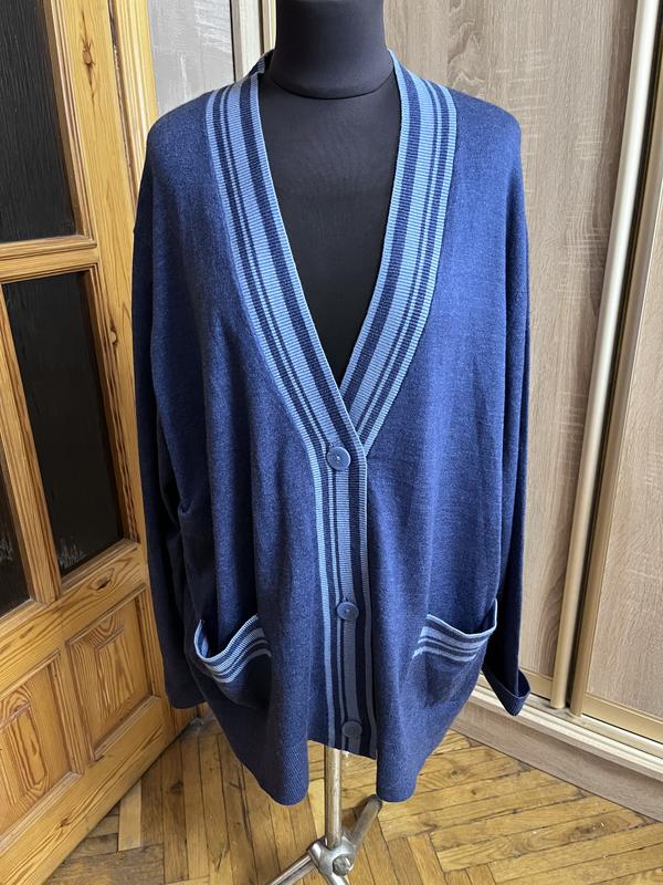 Кофта подовжена на ґудзиках, кардиган на ґудзиках. Має два накладних кармани. Новий без паперових бірок. Дуже гарно стилізується з джинсовим низом. Довжина 70 Напів обʼєм грудей 65 Рукав від плечового шва з розгорнутим манжетом 63 Рукав від шиї 78 Кардиган прямий по всій довжині