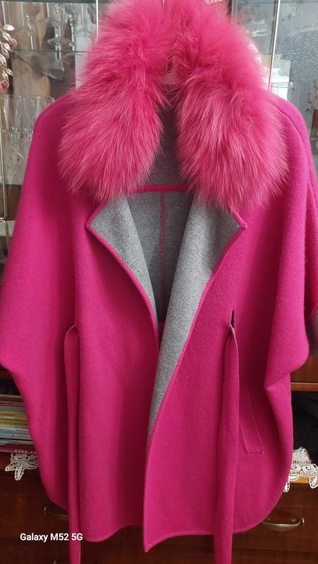 Продам кардиган ,фасон летучая мышь,пояс,рукав три четверти,мех натуральный отстёгиваеться, очень красивый яркий.Размер плечи 46,длина 76см.