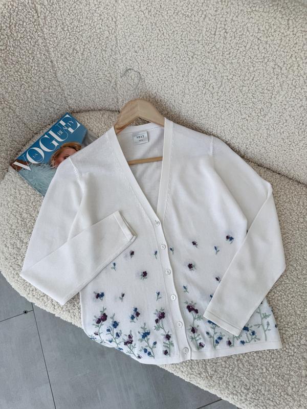 Білий кардиган з вишивкою 🤍 Р-р S півобʼєм грудей 47+ тягнеться довжина 55 рукав від коміра 70 💲550 uan