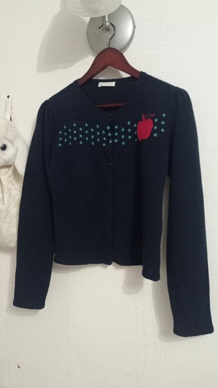 Отличная кофточка, 80 шерсть, остальные полеамид. Размер - S-M. Плечи - 36, подмышками - 48, рукав - 62, длина - 52.