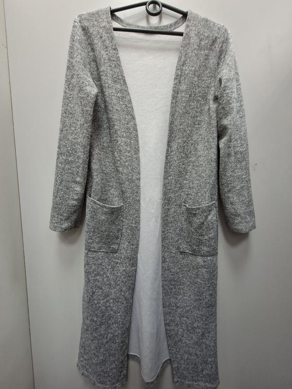 Кофта кардиган длинный серый. Світло-сірий меланж, має в складі бавовну. Розмір S/M/ Светло-серая кофта кардиган без застежки с накладными карманами.