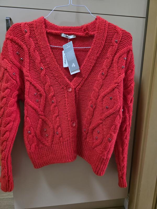 Красный теплый кардиган от George Приятный к телу Новый 85% акрил Подойдет на размер S/M, возможно даже L