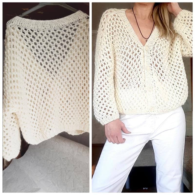 кардиган, новый, ручной труд,р.S, 50% шерсть 50% акрил ( Alize). Плечи приспущенные 72 рукав 26 грудь 62 длина 44