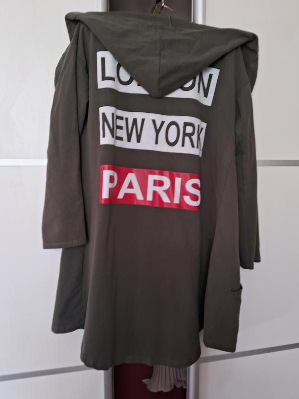 Длина перед 80см в зади 87см.Рукав 48см. ширина 50см.С капишоном два кармана по бокам без стежек.Стан идеальный