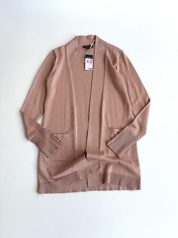Кардиган пудрового кольору віскоза Primark Розмір - XS/S Довжина виробу - 76 см. Обхват грудей - 90 см. Довжина рукава - 63 см. Плечі - 37 см.