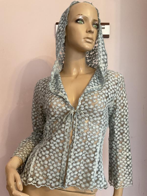 Качественный приемный кардиган завязывается.без дефектов. Замеры в груди 46 см низ 47 см длина 52 см 28:9:25