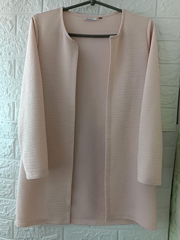 очень красивый кардиган известного бренда, розово пудрового цвета, длина 72, п,/ г 43+, плечи 34, рукав 52., состояние новой вещи.