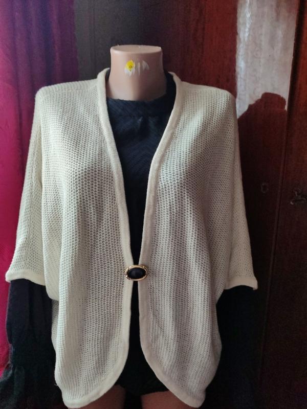 Стан новой вещи, без бумажной этикетки.На фото не передает реального мерцания, можно надевать с водолазкой,блузкой, с ремнем, или с брошью.Вариантов много, что позволяет дизайн вещи.Колир кремовый с блеском.Пог-77см+(из-за регланукава),пот-60см, длина рукава от горловины -48см, длина изделия -67см.Ткань тянется.Есть еще много чего интересного, подписи на обновление.
