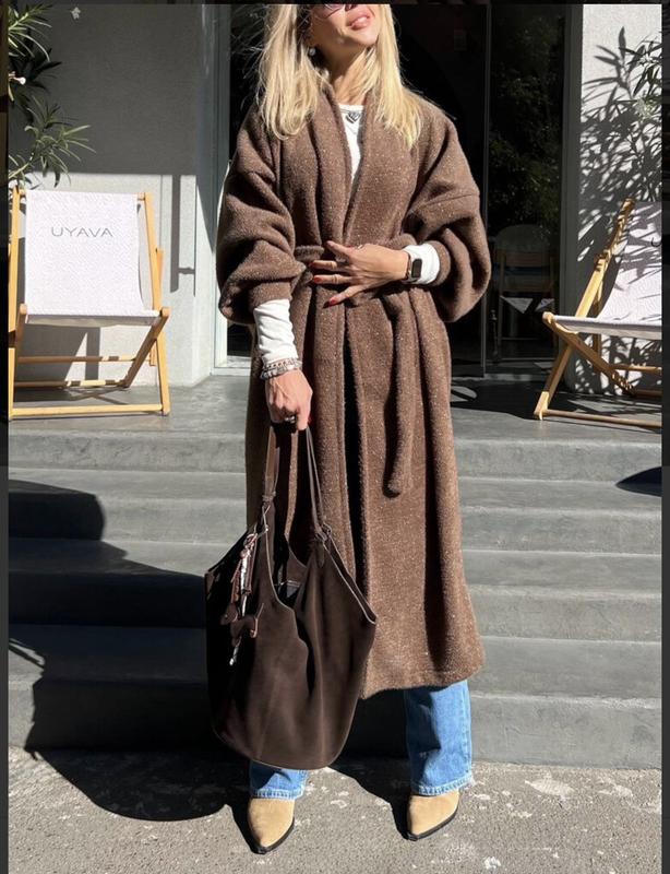 Ще тепліший і ще красивіший must have осені 2025 пальто- кардиган в шоколадному кольорі з люрексовою ниткою. В наявності ✨ Арт: 013/1 ??виш ???? Розміри:оверсайз ???? Тканина:53%ангора 27% бавовна 20% вовна ???? Колір:шоколад Заміри : моделі Зріст 170 90/70/90 Заміри: ✔️ довжина 126см. Плечі 72 см. Довжина рукава за внутрішнім швом 46 см. За зовнішнім швом 47см. ОГ 128см. ОБ 128 см.