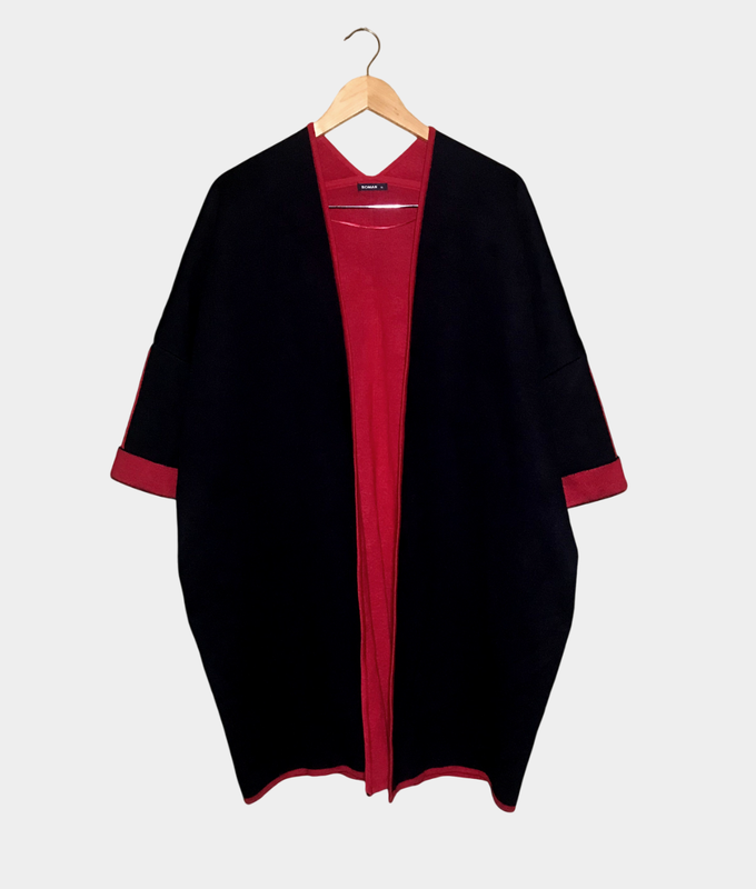 Красивый и эффектный кардиган. Мелкая машинная вязка, по плотности, как пальто. Рукав 3/4 со спущенной линией плеча. Свободный широкий крой, зауженный к низу. В спокойном состоянии: Полуобъём груди 80 Полуобъём внизу 70 Длина 96 Длина рукава от горловины 61, ширина манжета 15 Пройма 19