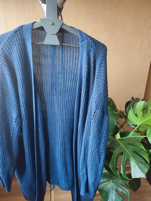 Красивый синий свободного кроя кардиган, средняя плотность.