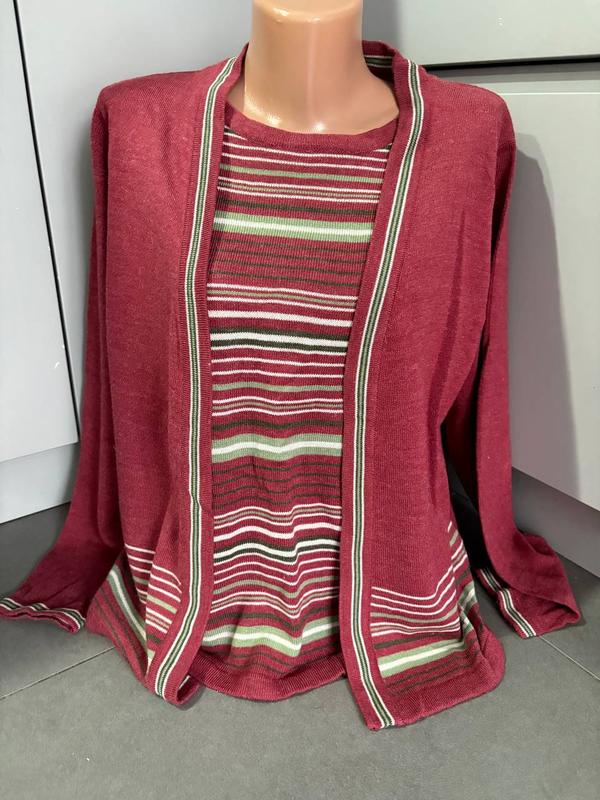 кофта с топом. бордовая плечи 38 ОГ 52 ОБ 53 рукав 61 длина 60